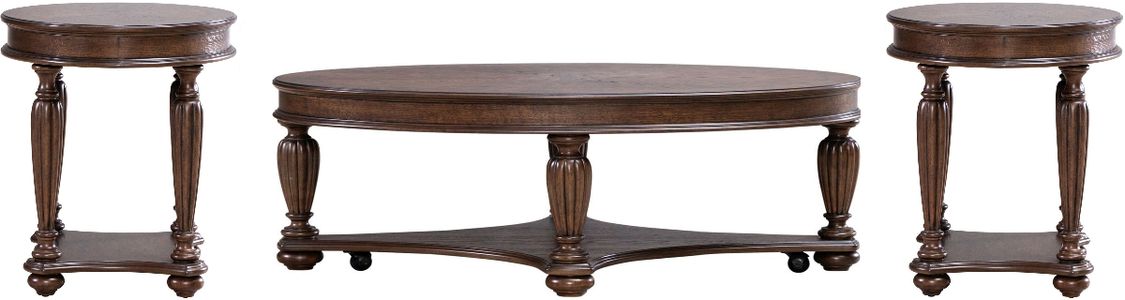 The Liberty Furniture Allington Satin Sienna 3-Piece Occasional Table Set includes a coffee table and two end tables. With a warm satin sienna finish, elegant pedestal bases, and durable construction, this set adds timeless charm and functionality to any space.Read More